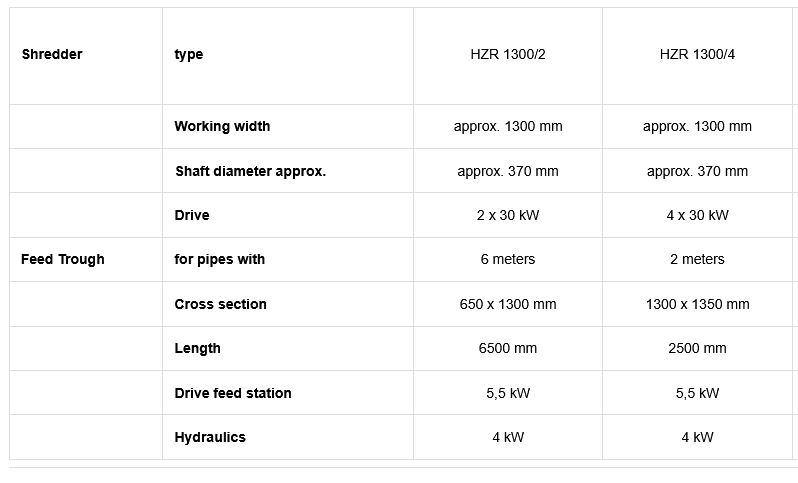 The NEUE HERBOLD pipe shredders type HZR are specially developed for effective pre-crushing of lumps and impact-resistant and thick-walled tubes with diameters up to 1200 mm.