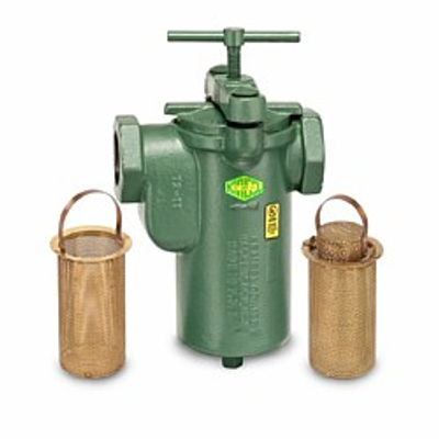 For higher pressure and larger sizes, our Model 72H series with stud and nut closures are available. Strainer baskets are fabricated from perforated metal. The smallest common perforation size is 1/64 inch in brass and 1/32 inch in stainless steel or monel. Filter baskets are manufactured with fine mesh wire cloth over supporting perforated metal. Optional patented double element baskets provide greatly increased separating area in the same space, and are easily disassembled for cleaning. Interchangeable strainer, filter and double element baskets provide a wide range of operating choices.