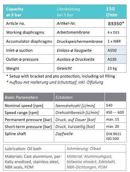 Since as long ago as 1965 we have been building pumps for use in crop protection sprayers and municipal equipment which, year after year, have been providing reliable service around the world. Depending on the application, we can equip the piston diaphragm pumps with NBR, Desmopan or FKM diaphragms.