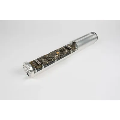 Pivot International designed and manufactured a custom down-hole monitoring tool for a Norwegian oilfield technology company. The tool is engineered for sub-sea drilling applications, integrating multiple sensors such as temperature, pressure, magnetic flux, compression measurements, and a 3-axis accelerometer. It features data logging capabilities and a wired communication link, all functional at temperatures up to 260°C. The tool includes ultrasonic and electromagnetic sensors for precise measurement of metal thickness and detection of casing collars in harsh environments. All aspects of design, engineering, testing, and material sourcing were handled by Pivot International's subsidiary, A2E Limited.