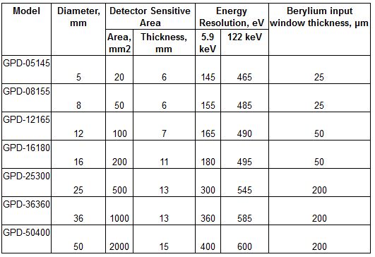 - ability to increase the energy rate to 20000 MeV/sec radiation detection in any spatial orientation depending on cryostat modification manufacturing in a portable cryostat;