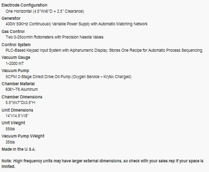 Plasma-EtchModel PE-50 -Compact Benchtop Plasma Cleaning System