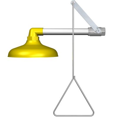 Emergency shower wall mounted with shower head in ABS-plastic, galvanized pipes and connections. Pull handle for crawling person. Designed for minimum flow of 76 l / min at 1,5-6,5 bar pressure.