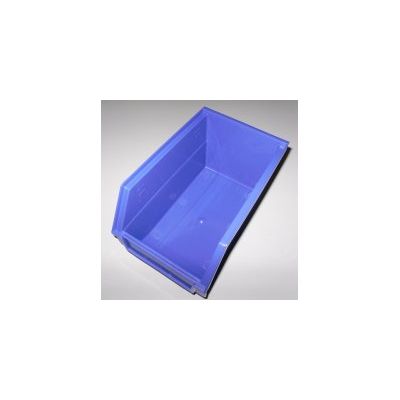 Plastic hanging storage bin. Volume 1.56L, Impact resistant plastic, blue in colour. Internal dimensions 200x120x115mm