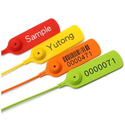 YTPS108 plastic seal customized logo tamper proof security seal. Material: P+PE. Length: 300/400/500mm. Color: Green, Red, Orange. According to customers requests. Laser marking company logo, number, barcode, QR number.