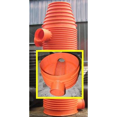The body of the Krušik spiral sewage manhole is made of our spirally-wound plastic pipe, while the rest of the constitutive parts of the manhole, such as inlet and outlet fittings, the bottom and the bench are fixed to the body by welding with totally watertight welds (seams). Such a combination of materials and manufacturing method results in the fact that using our manholes eliminates porosity and leakage of the manholes. In that ways it is possible to eliminate problems which could cause leakage and spillage of waste waters into the surrounding soil as well as a consequent contamination. The manholes are manufactured in the same range of diameters as our pipes – the inner diameter ID from 300 to 3200 mm.