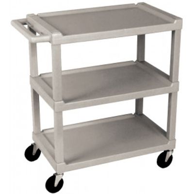 Specifications: Capacity: 300 lb (136 kg). Shelf Size: 16”W x 24”L (45.7 x 68.6 cm). Overall Size: 17 1/8" W x 32.5" L x 34 7/8" H (43.7 x 82.8 x 88.9 cm). Material: Impact-Resistant Polyethylene. Clearance Between Shelves: 12 1/8" (31 cm). Legs: ABS Plastic. Shelves: High Density Polyethylene. Four Swivel Casters: 4" dia. (10.2 cm). Color: Beige. Shipping Weight: 32 lb (15 kg).