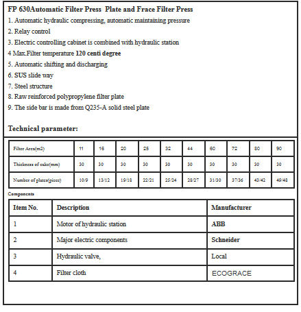 Ecograce - Model FP630 -Plate and Frame Filter Press