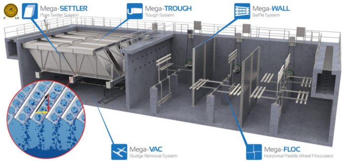 • Thousands of Mega-SETTLER (Plate Settler System) designs optimized for engineers and municipalities