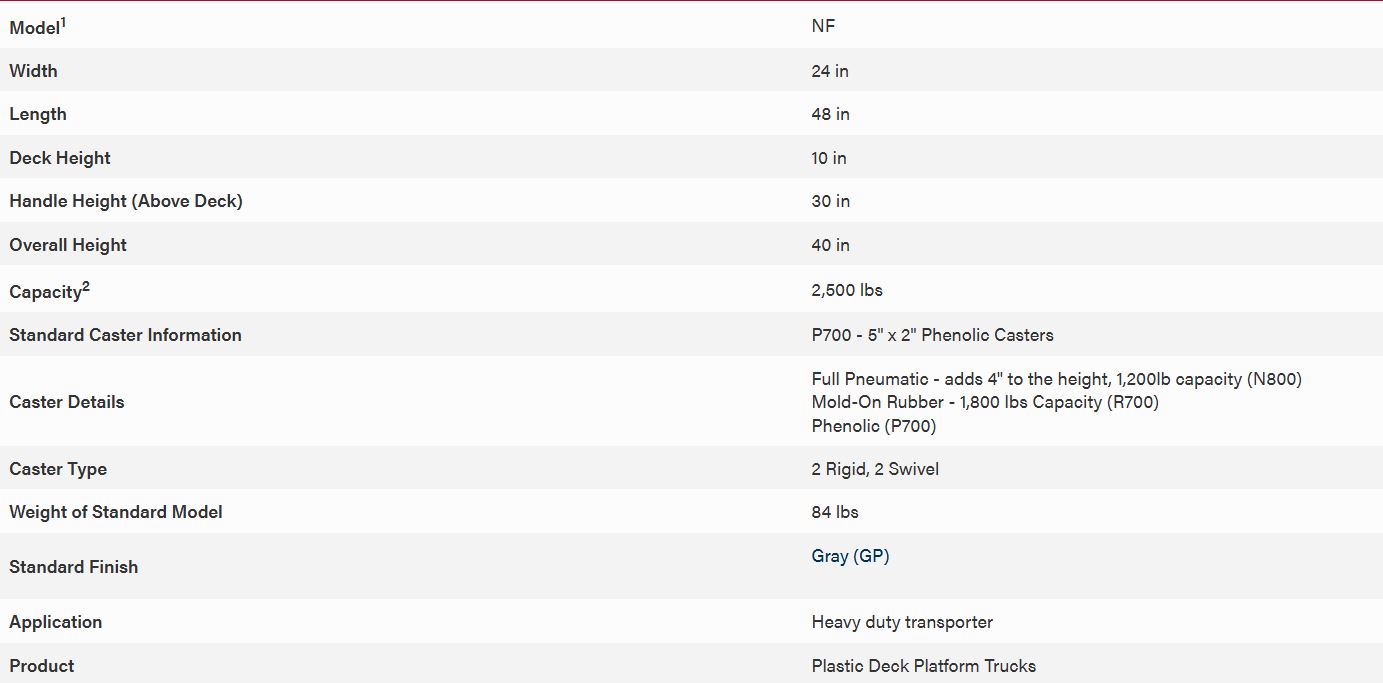 Jamco Products - Model NF248 -Platform Truck - Structural Foam Deck- 4 Wheels