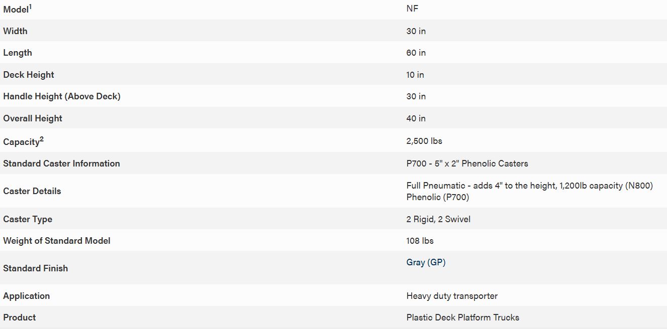 Jamco Products - Model NF360 -Platform Truck - Structural Foam Deck- 4 Wheels