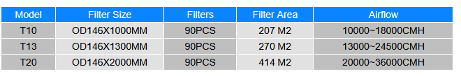 - Wide pleat space and narrow pleat depth helpful to improve the pulse jet cleaning