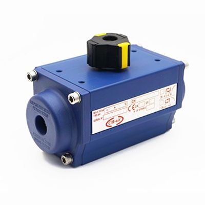 The Series A TTF pneumatic actuator has a body made of Hard Anodized and an Epoxy Polyester cover.