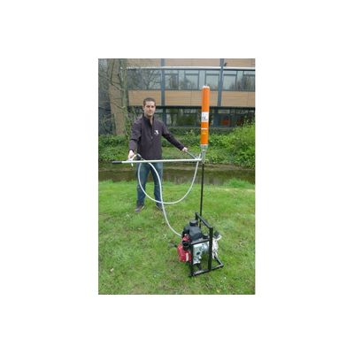 This pneumatic DPL and DPM testing set is a cost effective, simple and reliable tool suitable for light dynamic penetration testing up to approx. 10 – 12 m depth. It comprises of a pneumatic power-pack with a Honda fourstroke gasoline engine and maintenance-free air-compressor all integrated in a sturdy framework with carrying handle and a solid hammering unit with integrated air-cylinder. The unit holds a 10 kg (and an additional 20 kg) drop-weight and a fully automated pressure release valve. The air is led through the tubes of the framework where it can loose most of its warmth.