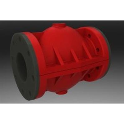 The RHINOFLEX "P" SERIES, pneumatic-hydraulic Pinch Valve, is designed especially for highly abrasive and aggressive applications. The valve comprises of a tailor made re-enforced elastomer sleeve, encased in a high-grade, cast ductile iron body. The elastomer sleeve is the only wetted part. The inside cavity between the sleeve and the wall of the body, acts as a Built-In Actuator. Compressed air or Hydraulic Oil is used to operate the valve as a "Control" valve or "On-Off " service, and the central portion of the sleeve collapses, gas tight even on solid particles. Pressure is released to open the valve. This valve is extremely simple, cost effective and surprisingly versatile.