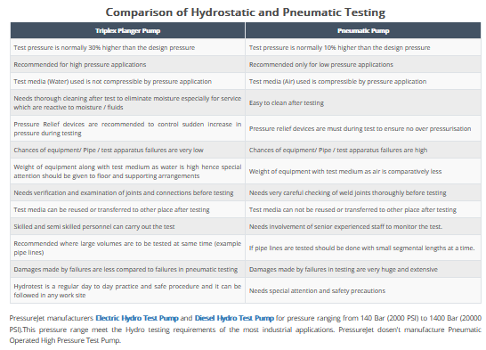 Pneumatic tests are potentially more dangerous than hydrostatic tests because of the higher level of potential energy stored during compressing the gas. Care must be exercised to minimize the chance of brittle failure during testing by initially assuring the system is suitable for pneumatic testing. Pneumatic tests could be performed only when at least one of the following conditions exists: