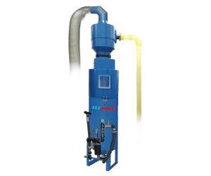 The cyclonic separator is mounted on top of the pressure blaster assembly, right onto the storage hopper.