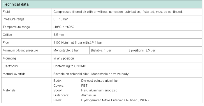 Series of spool valves, conforming to ISO 5599/1 standards for the mounting only on sub-base, with CNOMO pilot. Coils and connectors are to be ordered separately.
