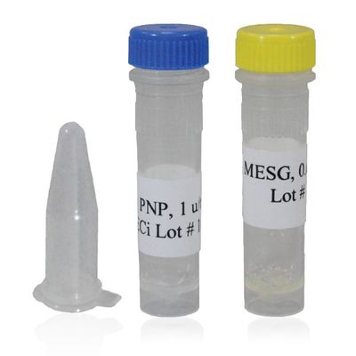 Optimized Balance Supply: Affinity Purified Recombinant Purine Nucleoside Phosphorylase (1.0 Unit) + MESG. NECi Recombinant PNP catalyzes Ortho-Phosphate dependent transfer to ribose with release of free purine base. One unit produces 1 µmole of hypoxanthine from inoside per minute, at pH 8.0 and 22°C. Supplied freeze-dried with Enzyme Diluent Bulb + optimized aliquot of co-factor, MESG.