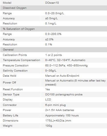 Economical pocket dissolved oxygen tester, 1 or 2 points calibration, setup menu contains 6 options, suitable for educational and aquaculture applications, accuracy 0.5 mg/L.