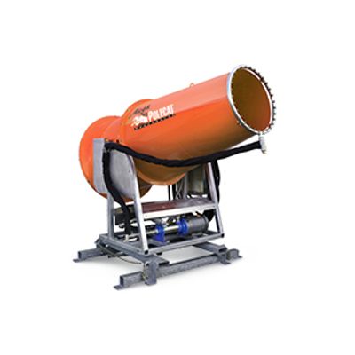 The Mega PoleCat Evaporator is the big throw machine (over 350 feet/105 meters) that will evaporate water over large areas and in big volumes. The Mega PoleCat is mounted on a forkable galvanized skid with 60 HP fan (45 Kw), electric head jack, turntable bearing with menu driven user defined 359 degree oscillation, optional on-board booster pump, control panel with PLC and touch screen display.