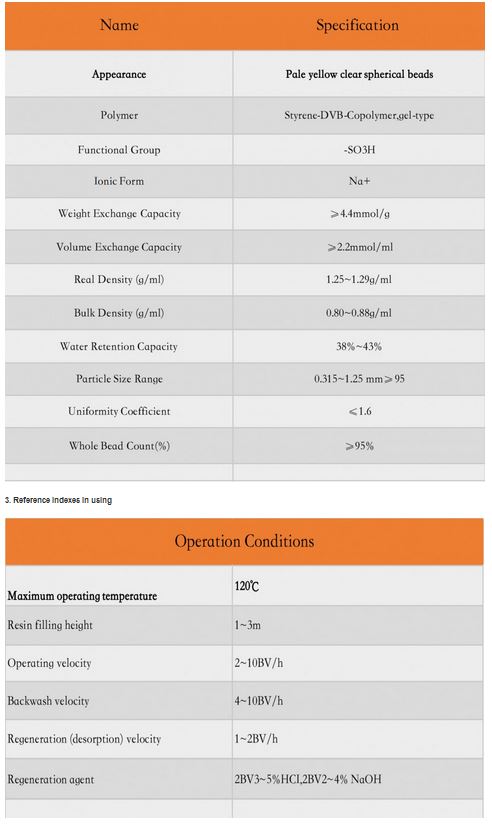 Purosorb brand 001*10 is a cation exchange resin with sulfonic acid groups in polystyrene, in the form of spherical particles. It has high exchange capacity and high operating capacity, low pressure drop, good physical and chemical stability. The conventional ex-factory form is provided with sodium or hydrogen. 001*10 can be used in all water softening processes, dealkalization, deionization, pure water and ultrapure water preparation, food industry, pharmaceutical and chemical treatment applications and other fields.