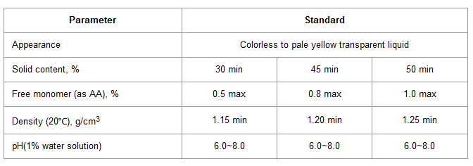PAAS is sodium salt of Polyacrylic acid(PAA), it is innoxious and soluble in water.PAAS can be used in situations of alkaline and high concentration without scale sediment. PAAS can disperse the microcrystals or microsand of calcium carbonate, calcium phosphate and calcium sulfate. PAAS is used as scale inhibition and dispersant for circulating cool water system, papermaking, weave, dyeing, ceramic, painting, etc.