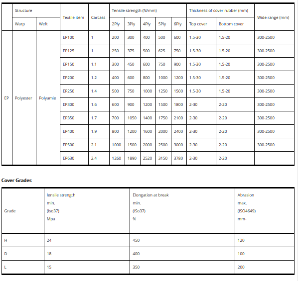 The polyester conveyor belt is also called EP conveying belt. Its framework material is the polyester canvas interwoven with meridian terylene and latitudinal polyamide fiber. It has advantages of short tensile, stable size good elasticity, shock resistant, heat resistant mould-resistant, high adhesive strength. It is applicable to convey material in medium and long distance, with heavy-load and at high speed.