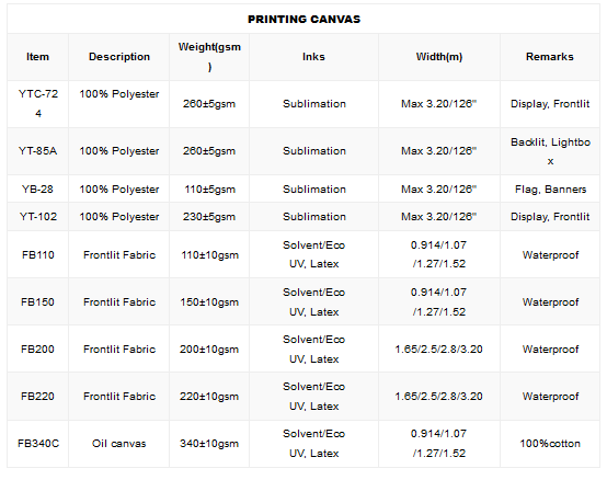 Yiya - Model YTC -Polyester Printing Canvas