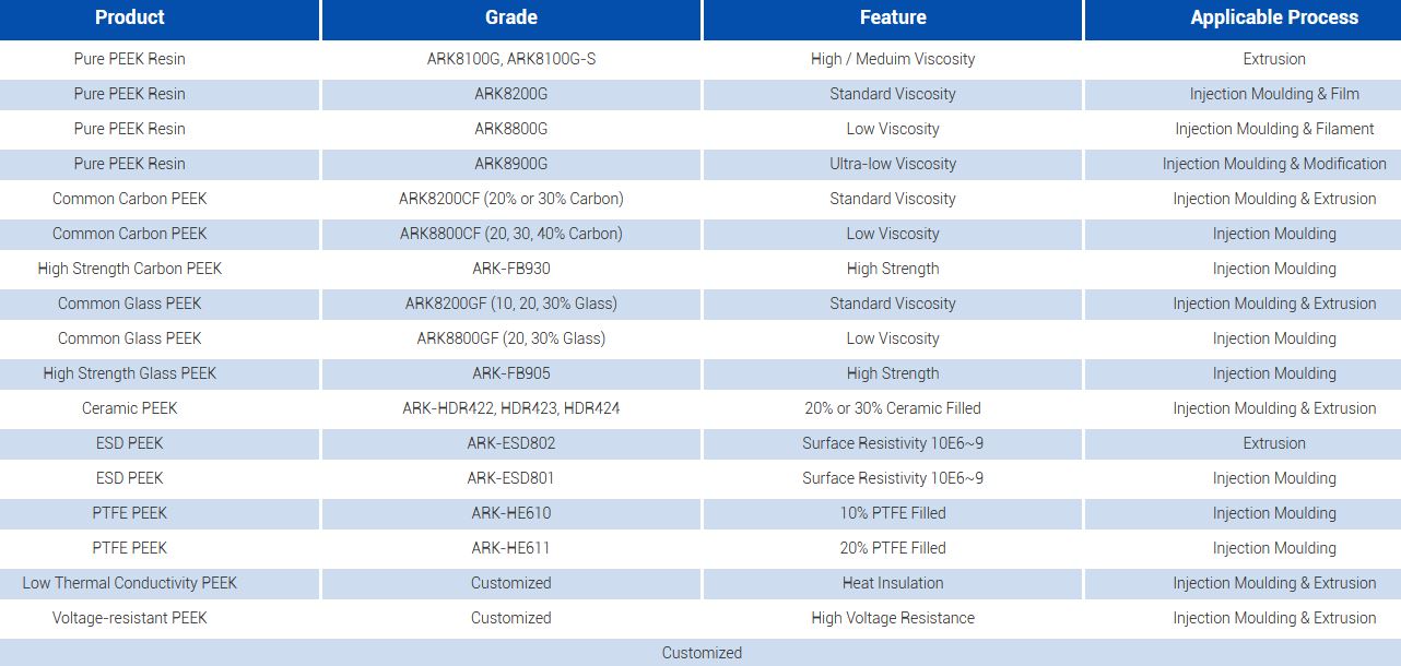 Polyether ether ketone (PEEK) is one of the most widely used high-performance polymers in the poly aryl ether resin family. As a semi-crystalline thermoplastic polymer, it has advantages such as high-temperature resistance, low-temperature resistance, wear resistance, high strength, corrosion resistance, gamma ray radiation resistance, fatigue resistance, easy forming etc. It is a high-performance polymer with the best comprehensive performance.