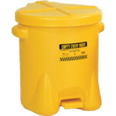 Eagle Poly Oily Waste Cans are constructed of red high density polyethylene (HDPE) and offer fire safe temporary storage of solvent rags, waste rags, shavings and other materials subject to spontaneous combustion. Will not rust or dent, are resistant to most chemical compounds, have no seam for a leak proof construction, and feature self-closing lid with foot lever and with a flared base for added stability. Available in Red, Yellow or Black. FM Approved. Compliance: OSHA 29 CFR 1910.125(e)(4)(ii) and OSHA 29 CFR 1910.125(e)(4)(iii).