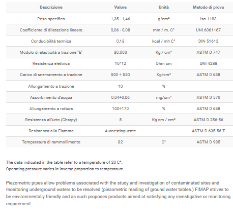 FIMAP polyethylene pipes and filters are recognized and highly regarded by the majority of operators in the sector as satisfying any requirement made by companies specializing in water wells. The use of high quality raw materials and rigorous testing during the production phase ensure that sanitation and technical regulations of most industrial countries are conformed with. In particular, threading and micro-slotting conform to DIN 4925, or to specific customer requiremen.