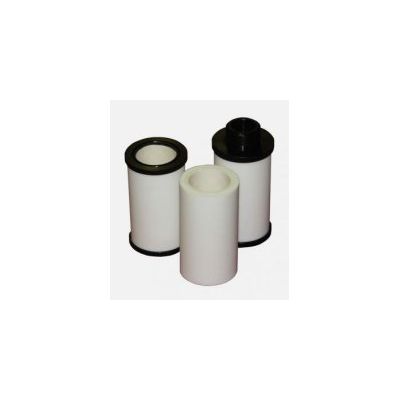 Inner layer borosilicate microglass fibers, external layer made of sintered polyethylene granulate, end caps nylon