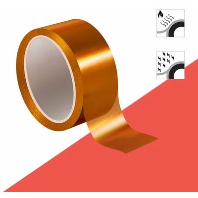 Due to its large range of temperature stability and its electrical isolation ability, polyimide (equivalent to Kapton®) tape is used in electronic manufacturing as an insulation and protection layer on electrostatic sensitive and fragile components. It protects electronics and PCB’s during fabrication. And its amber color makes for easy identification and removal, and it comes with silicone adhesive for easy release and no residue upon removal.