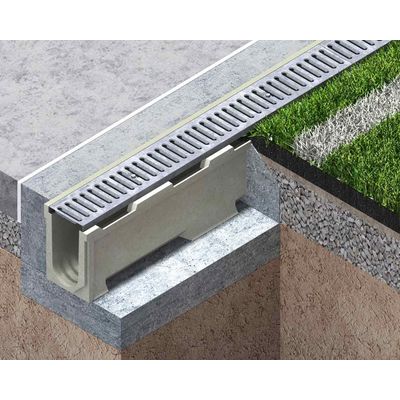 Polymer concrete drainage channels for sports and recreation facilities