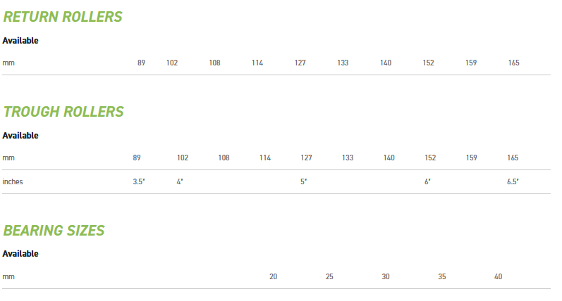 - Self-cleaning (anti-static) surface reduces material buildup on roller face for low maintenance & improved belt tracking