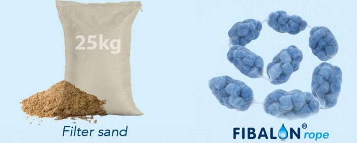 4 Fill up the filter with FIBALON®rope as high as the sand