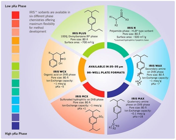Excellent recoveries thanks to the highly retentive nature of polymeric phases. An absence of residual silanol groups associated with silica media. A high surface area that results in higher analyte capacity compared to silica-based SPE. Benefiting from the absence of leachates and extractables, from the plastic and the media. Inert to a wide array of solvents and works across a wide pH range. Reduced resin volumes for improved detection limits and lower hold-up volumes. Resistant to de-wetting. Six phases to cover most applications.