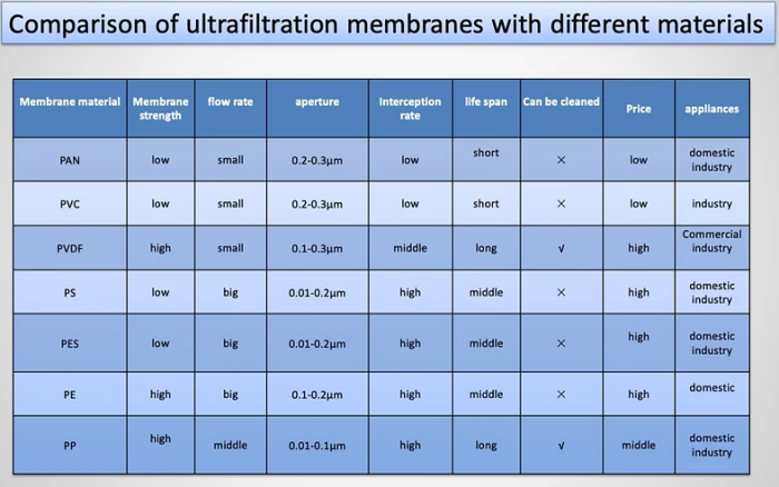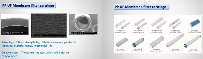 Polypropylene UF membrane is a membrane separation material that is stretched into pores by pure physical methods. It has the features of high strength, acid base resistance, large flux, nontoxic, odorless, and stable performance. The use of micropores in the membrane wall (0.01x0.1 u,m) allows water or low molecular substances in the solution to pass through, while macromolecular particles, colloids, bacteria, and pyrogens are intercepted, so as to achieve the purposes of separation, condensation, purification for the substance.