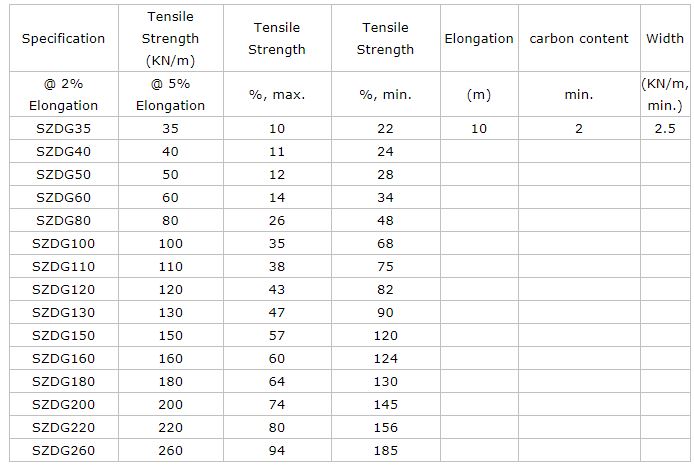 Type(tensile strength): 35KN/m, 40KN/m, 50KN/m, 60KN/m, 80KN/m, 100KN/m, 110KN/m, 120KN/m, 130KN/m, 150KN/m, 160KN/m, 180KN/m, 200KN/m, 220KN/m, 260KN/m