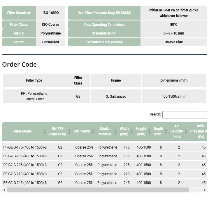 Applications: Fan-coil Units. Highlights: Robust construction. Washable.