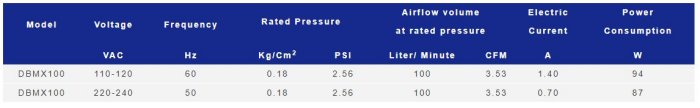 Max Pressure:0.452 Kg/cm2 (6.43PSI). Max Airflow volume:160 Liter per minute (5.65CFM). Extremely silent 48 dBA. Energy saving, Oil-free, easy maintenance.