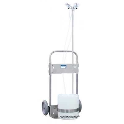 The Portable 5 Gallon 2-4 Way Fogger is a chemical atomizer that uses compressed air and venturi action to draw ready-to-use chemical solution from a 5 gallon pail on the cart through a telescoping mast to the fogger body which atomizes the chemical and projects it as small to medium size “damp” particles at distances up to 15 feet. Fog (mist) fills the air and saturates exposed surfaces, including hard-to-reach areas.