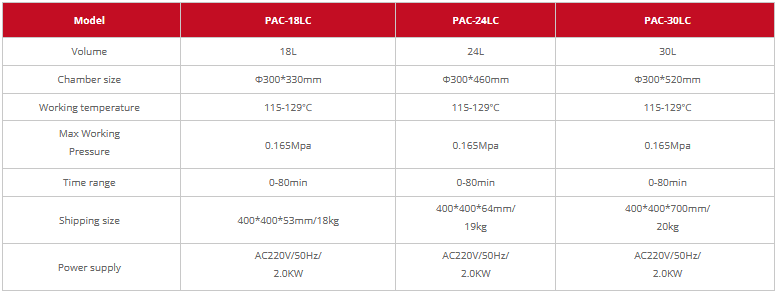 Autoclave(also called steam autoclave) can be divided into portable autoclave and vertical autoclave. Autoclave uses electric heating wire to heat water to generate steam and maintain a certain pressure,which consists of a sealed barrel, pressure gauge, exhaust valve, safety valve, electric heating wire, etc. Portable Autoclave 18L/24L/30L is an ideal equipment for disinfection and sterilization of medical instruments, surgical dressing, glassware, culture medium, food factory,water plants etc.