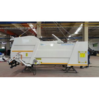 The fixed mini compactor has the same compression and unloading power as the Mini compactor. Can be installed on a wheeled or fixed platform at a sufficient height. The system has an electromotor driven working principle. The mechanism provides compression with the help of a double articulated knife, and discharge with the help of an inner curtain. It has the ability to transfer to the ORV 300 and 400 series. The container lifting apparatus allows both container and manual loading.