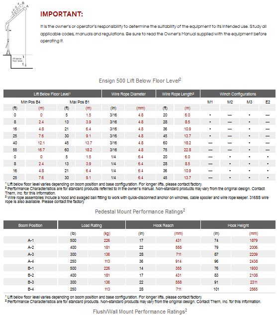 Thern Ensign - Model 500 lbs (226 Kg) -Portable Cranes
