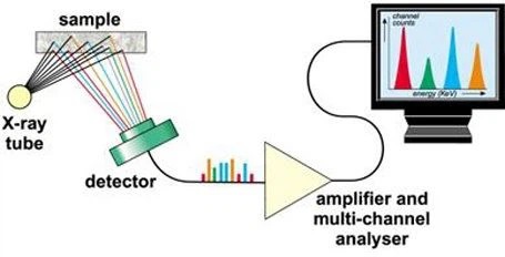 The basic concept of all spectrometers is a radiation source, a sample and a detection system. In EDXRF spectrometers, the X-ray tube acting as a source shoots a sample directly, and the fluorescence coming from the sample is measured with an high resolution detector. This detector is able to measure the different energies of the characteristic elemental radiation coming directly from the sample. The detector can distinguish the radiation from the sample into the radiation from the different elements present in the sample. This separation is called dispersion.