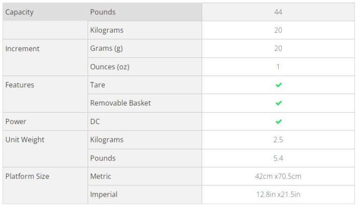 - Tare feature to subtract the weight on any object (blanket) on the tray