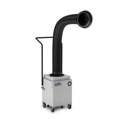 The Portable Floor Sentry fume extractor is a safety engineering control used for the capture and filtration of airborne contaminants. This source-capture fume extractor features heavy-duty casters for easy mobility, a 5` diameter flame-retardant and self-supportive flex arm, a small footprint, and high-quality filtration media.