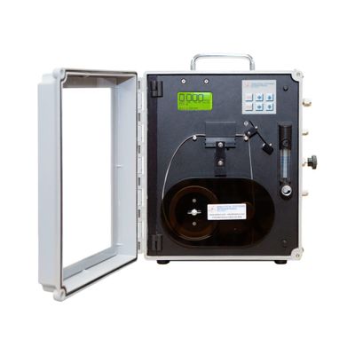 The analyzer features the only detection technology capable of measuring hydrogen sulfide without interference or “false positives” from other components. The microprocessor-based technology provides analysis based on the specific and interference free ASTM approved tape detection of operation. As the sample enters the analyzer an on-board precision flow meter regulates flow rate. The sample is then humidified by the Humidifier Chamber. Next, the sample is introduced to the specific lead acetate sensing tape. Hydrogen sulfide is the only component that will form a brown stain on the tape which is proportional to the hydrogen sulfide concentration (rate-of-change based).